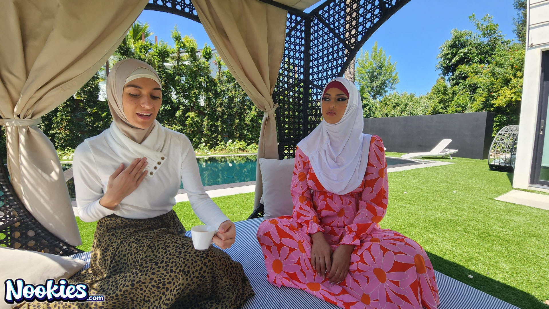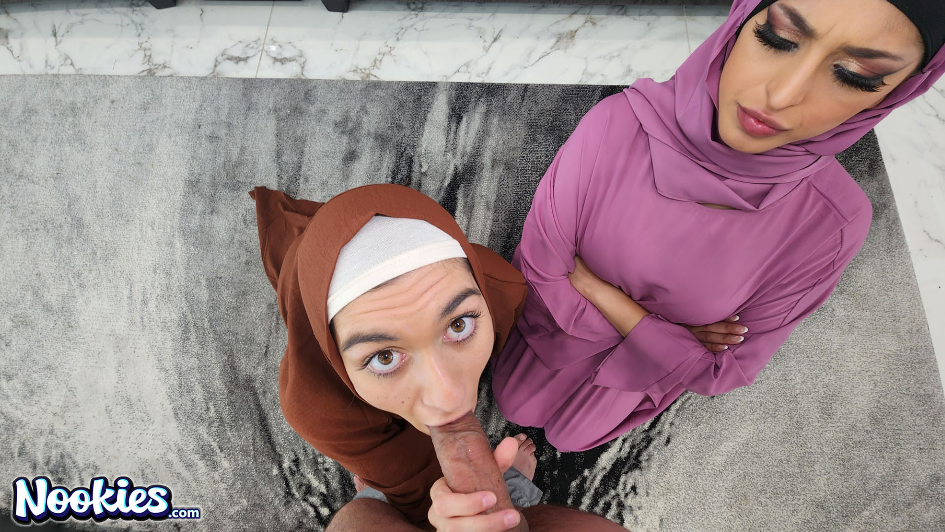 Sophia Leone and Aubrey Babcock in the same room, on the same bed wearing Hijabs? What could they possibly be up to? The horny siblings meet up to teach Allen a lesson. "What if we just tried sitting on it?" That a phrase he hears when his auntie Aubrey and Sophia compete for his cum.