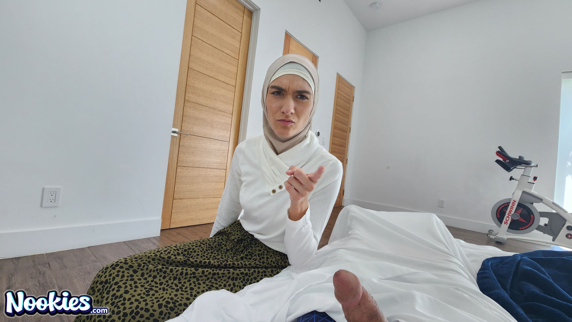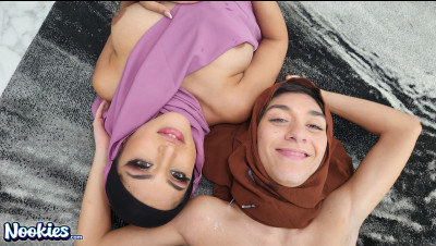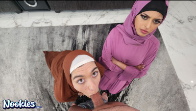 Sophia Leone and Aubrey Babcock in the same room, on the same bed wearing Hijabs? What could they possibly be up to? The horny siblings meet up to teach Allen a lesson. "What if we just tried sitting on it?" That a phrase he hears when his auntie Aubrey and Sophia compete for his cum.