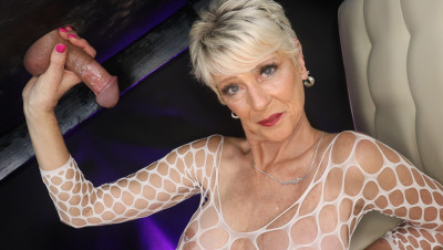 Foxxxy Darlin has years of cock milking experience so it's no surprise our man didn't last very long at the milking table. Foxxxy very gently strokes his cock right at the tip. This excited him in a big way and it's also an incredible turn-on for the fiery Gilf. She milks him dry and gets a load of cum splatters across her cute fishnet dress and big tits.