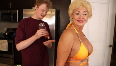 Seka Black might be in her 60's but she's still horny as fuck. Her hubby is away but her son's friend Jimmy Michaels is visiting. It's a sunny day and Seka wants to lay out in her bikini. She also wants to get fucked. Her plan is to have Jimmy apply lotion and when he does she pulls out one titty. It works like a charm because Jimmy instantly becomes rock-hard. Jimmy fucks her tight pussy and blows on her big tits in an epic granny fuck fantasy.