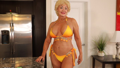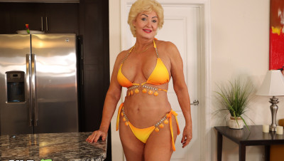Seka Black might be in her 60's but she's still horny as fuck. Her hubby is away but her son's friend Jimmy Michaels is visiting. It's a sunny day and Seka wants to lay out in her bikini. She also wants to get fucked. Her plan is to have Jimmy apply lotion and when he does she pulls out one titty. It works like a charm because Jimmy instantly becomes rock-hard. Jimmy fucks her tight pussy and blows on her big tits in an epic granny fuck fantasy.