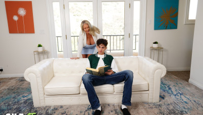 “Oh fuck!” That’s all Dylan can say as GILF Maddie Cross exposes her massive boobs in front of him. He just turned 18 so that makes him fully legal and Maddie is determined to fuck him now that he's all grown up. She notices his growth spurt, especially his big cock and firm abs. He's trying to study but can't help but be distracted by the sensual Maddie Cross. They fuck and he titty fucks her for good measure, exposing all over her massive tits.