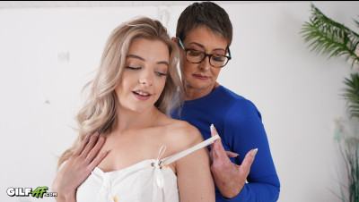 With her hormones raging, bratty teen Blonde Gabie is pretty aggressive towards Mrs. Galloway. She doesn't want to be in therapy talking about her problems and would do anything to end the therapy session. She's a feisty little thing with a smart mouth on her. Mrs Galloway is fed up and confiscates her phone when Gabbie straight up starts playing with herself. The experiences Toni is going to teach her a lesson and slaps her ass which turns on the teen. Soon they engage in hot lesbian granny on teen sex.