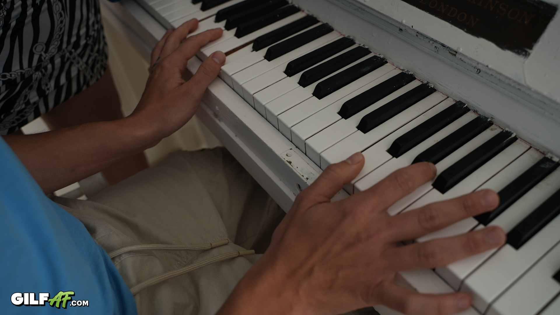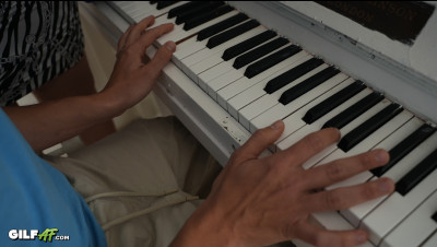 Piano lessons with step-granny? Sounds pretty boring until you watch this super exciting new video where Benjamin ended up fucking her instead. Its pretty clear that Benjamin isn't interested in boring piano lessons. Claire tried to train him but since shes wearing a super sexy top exposing her tits. Benjamin pulls out his cock and starts jerking off at the sight. Its thrilling to watch especially as the two of them tear into each other and he gives her a messy creampie.