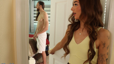 Nikki Nicole is a freak. She’s fucked her way around the neighborhood but she’s never fucked a nude model. Mike is a male nude model and just got out of the shower wearing only a towel around his waist. He is in his bedroom about to dress when his sister’s BFF Nikki walks in on him. Things get heated fast and turn into a passionate fuck session for the tiny-titted teener.