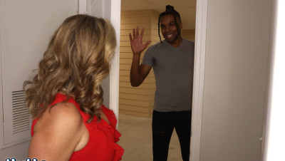 Kaby loves older MILFs - he makes no bones about it. So he's super stoked to visit his buddy's mom Nina Nite. She loves younger men and especially big black dicks. Kaby fakes a shoulder injury to get the lhorny milfs attention when she starts rubbing his shoulders. Things escalated fast when she reached for his hard prick. She sucks him off and gets a deep hard fuck in the living room. Kaby pulls out and blows his was across her hot milf face. It's their little secret and she invites him back for another sex session.