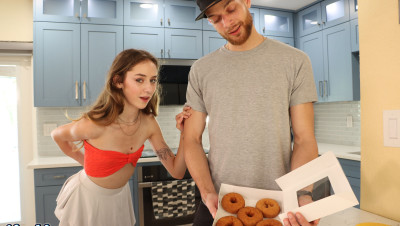 On his food cheat day, Cali decides to order some donuts. He wants 2 chocolate dipped, 2 birthday cake, and 2 glazed. When the order is delivered, he notices one of the glazed donuts is missing the actual glazing. After bringing it to her attention, Daisy Fox finds a fun and creative way to decorate the plain donut with his very own special cum glazing.
