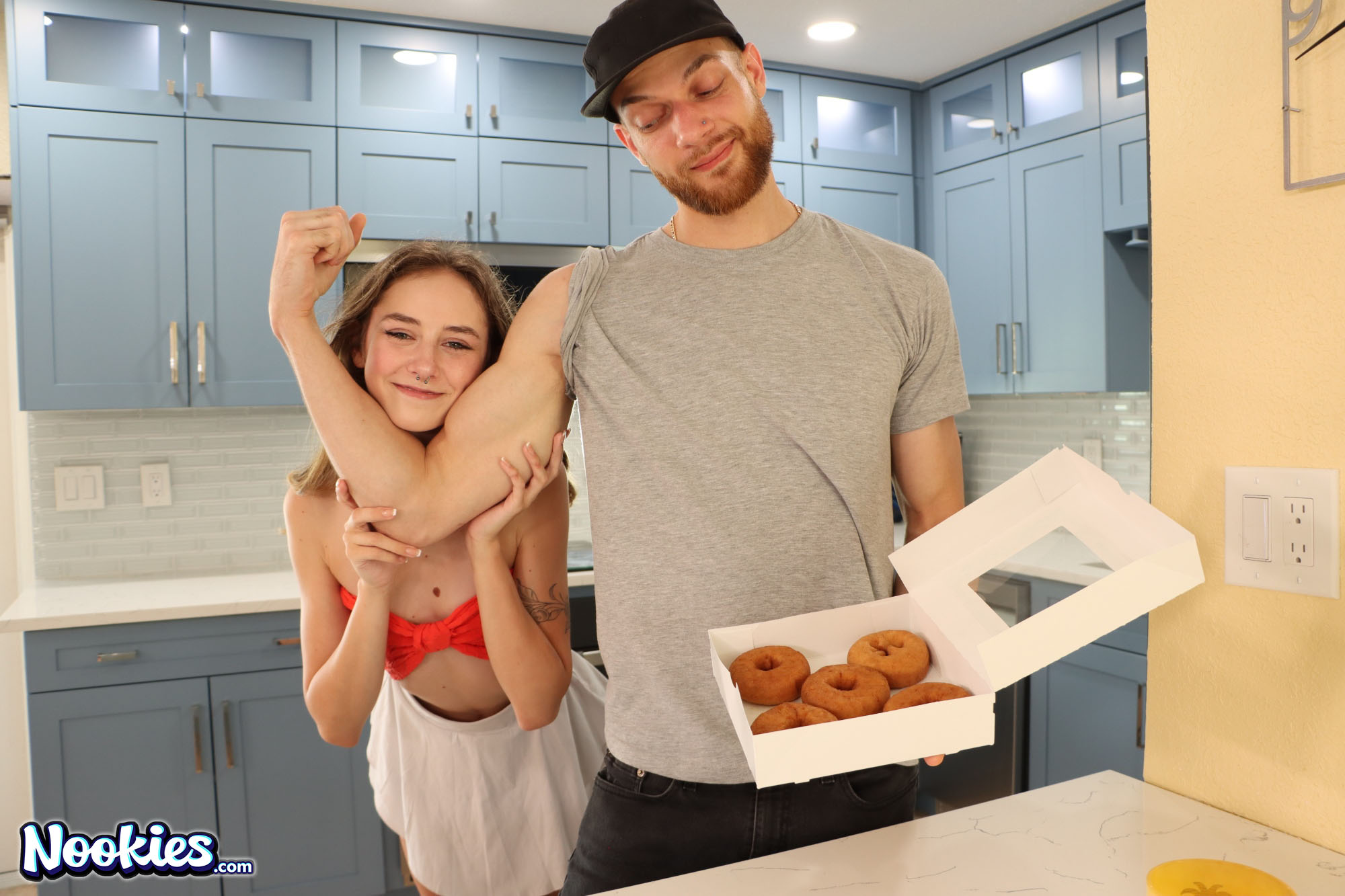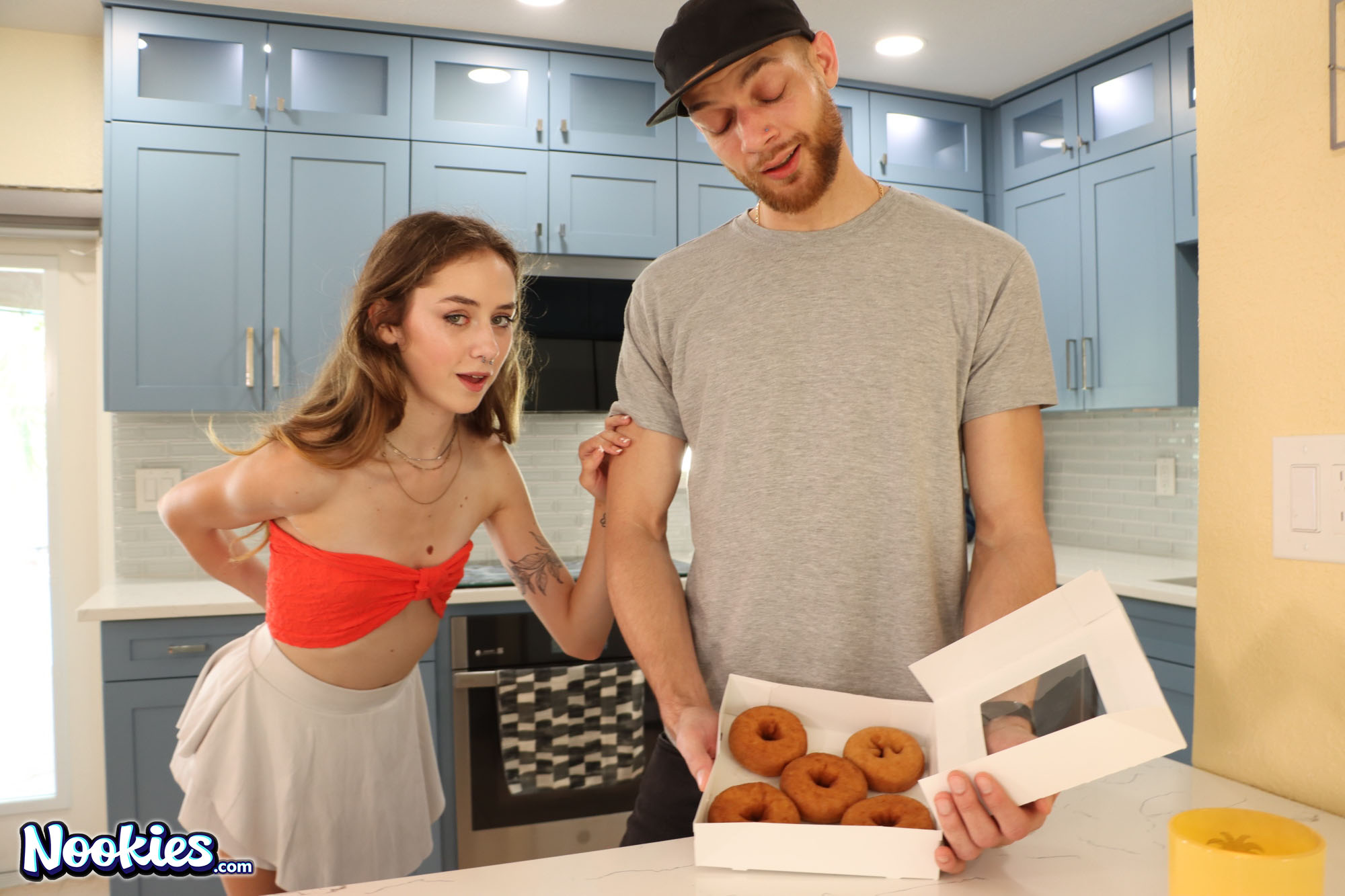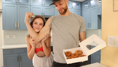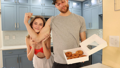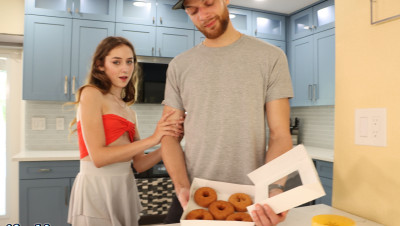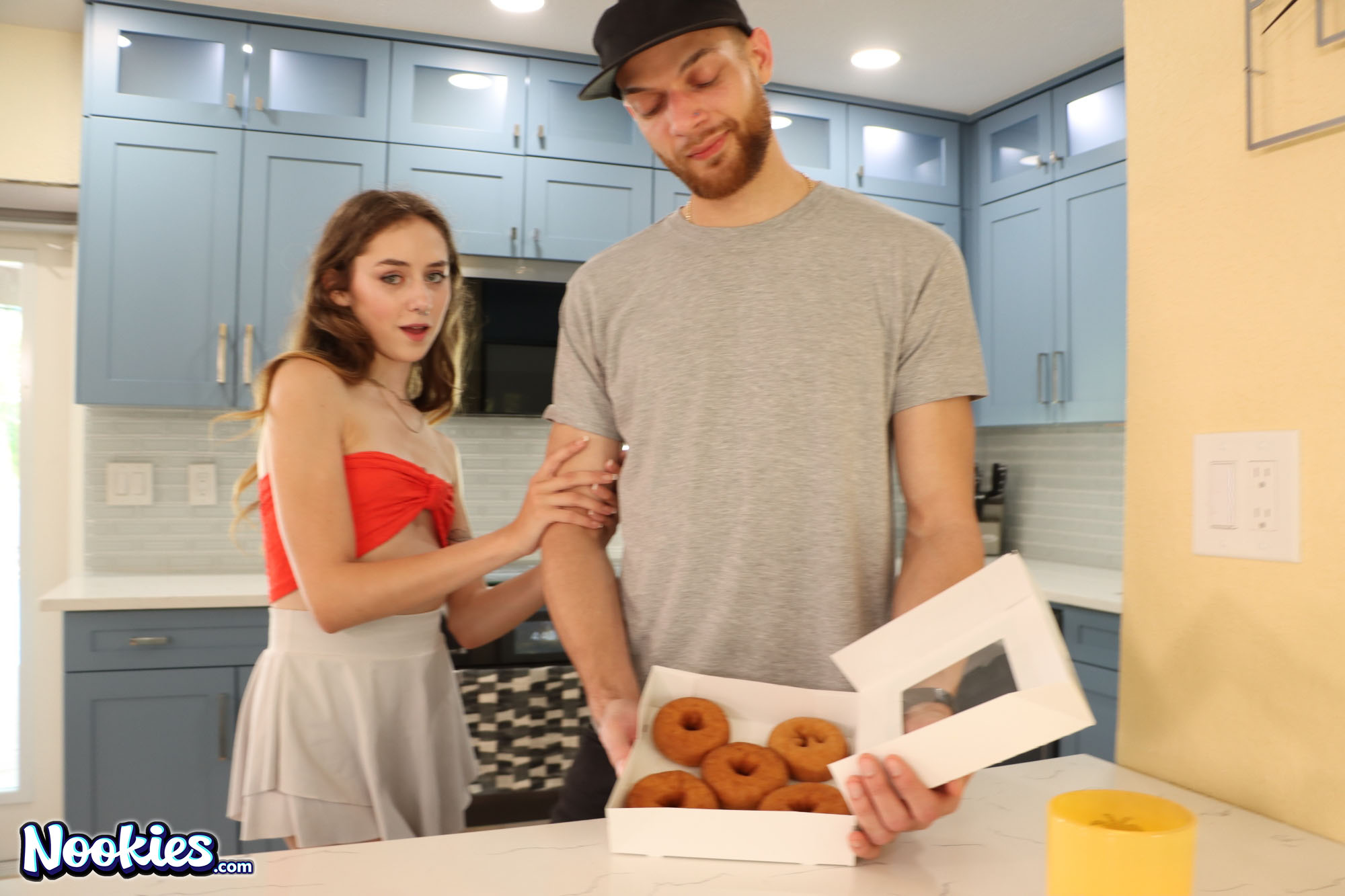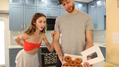On his food cheat day, Cali decides to order some donuts. He wants 2 chocolate dipped, 2 birthday cake, and 2 glazed. When the order is delivered, he notices one of the glazed donuts is missing the actual glazing. After bringing it to her attention, Daisy Fox finds a fun and creative way to decorate the plain donut with his very own special cum glazing.