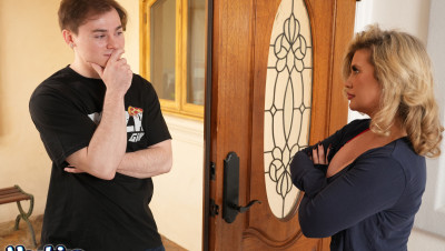 Anthony arrives at Andie Anderson's door with a late pizza, and she rips into him, furious at the lousy service. But her anger quickly flips when she notices the bulge in his pants, and the tension between them explodes into raw lust. She drags him inside, and the scolding turns into a rough, wet, no-holds-barred fuck right on her bedroom floor and blows his load accross her amazing tits and face.
