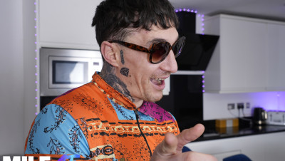 Destiny Blue teases her step-grandson about his tame vacation plans, daring him to match her wild youth. That naughty MILF drops to her knees for a sloppy blowjob, then rides him hard on the couch. He explodes across her massive tits, leaving her glistening and smug.
