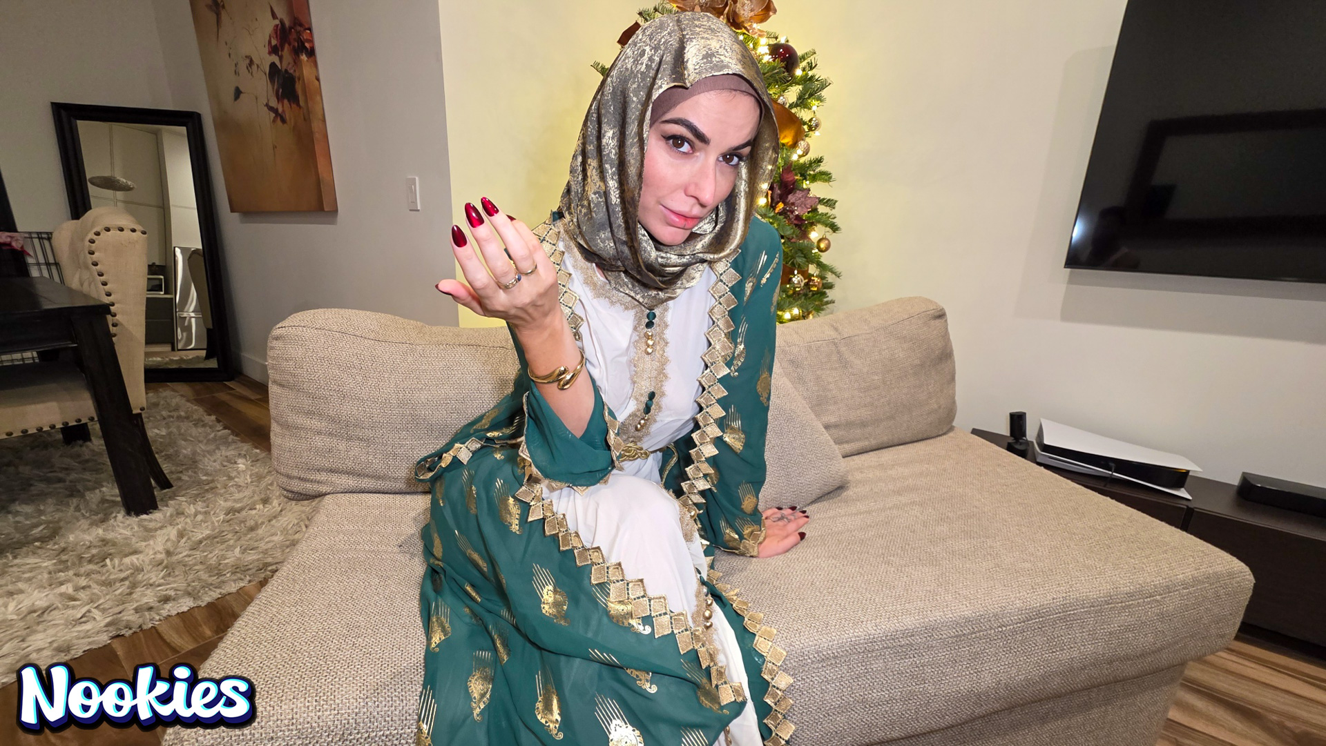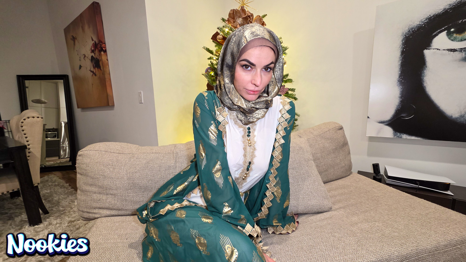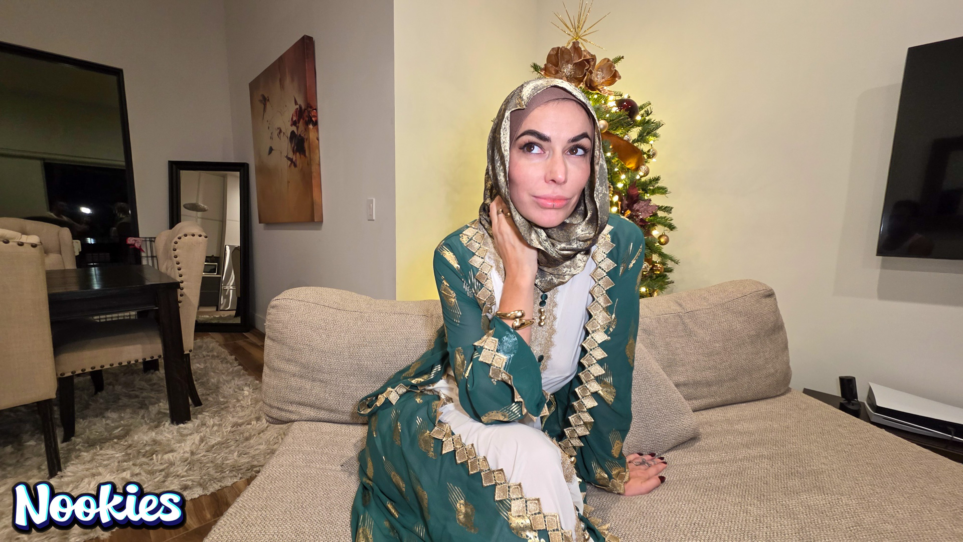 A lonely college student with no place to spend Christmas is invited to dinner by his hijab-wearing professor Mrs. Valencia. She complains about her husband always being away and the conversation turns intimate. What starts as a kind gesture ends with them crossing a line into a balls deep fuck for the stunning hot wife professor and ends with a messy facial.