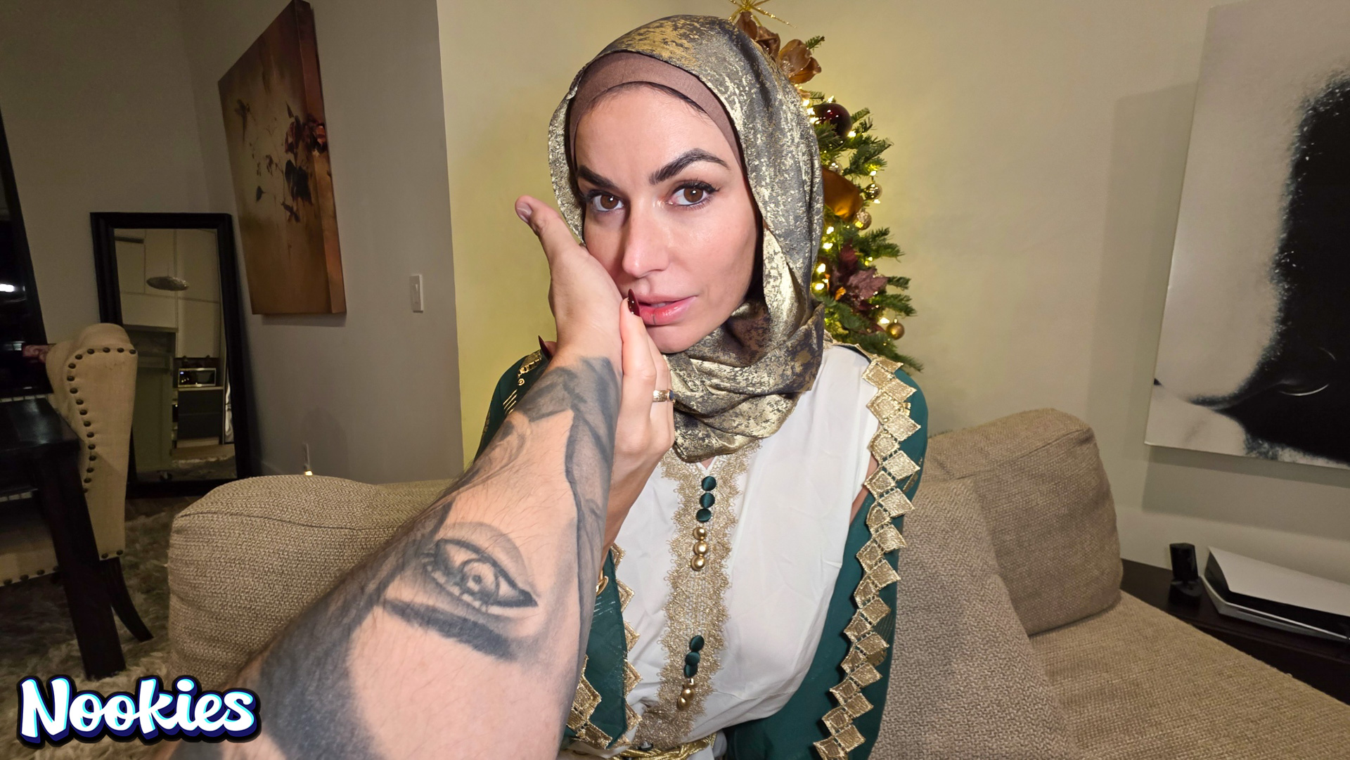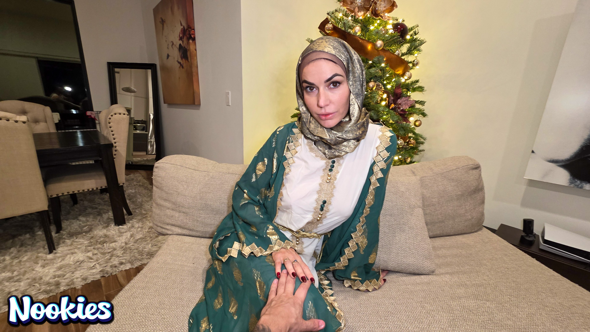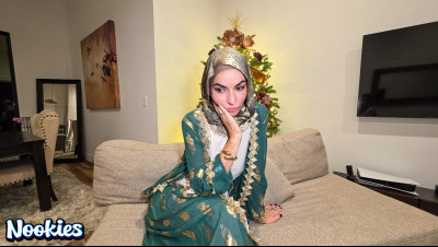 A lonely college student with no place to spend Christmas is invited to dinner by his hijab-wearing professor Mrs. Valencia. She complains about her husband always being away and the conversation turns intimate. What starts as a kind gesture ends with them crossing a line into a balls deep fuck for the stunning hot wife professor and ends with a messy facial.