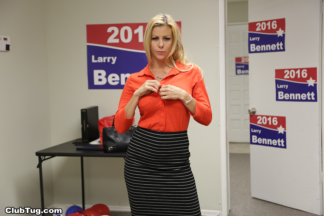 Hot off the campaign trail, young boy Joey gets caught playing with himself in the office. Milf Alexis Fawx takes notice and helps the young man concentrate by joining in and letting him fuck her big tits while she milks him dry with her dirty talking and sensual cock teasing.
