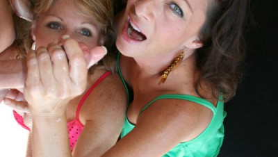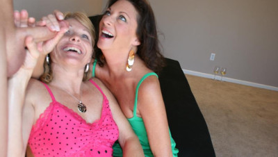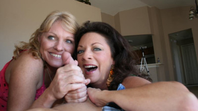 After getting a lil hot at her party next door, these milfs wanna jerk jizz before thier husbands gets home. "Hurry up Jackie I wanna see this cock burst" Watch as these two armatures coax gallons of cum from the neighbor!