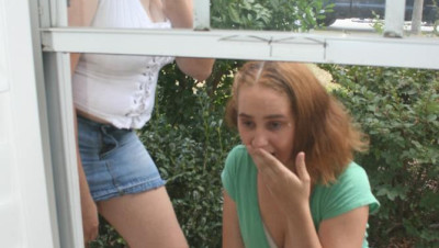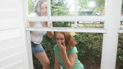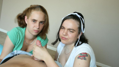 "Ok, we can help you jerk your cock Mr. Franklin, but we aint gonna swallow the sticky stuff thats gross, oh my gawd!" Says two curious teens Karla and Carmen as they spot the neighborhood perv jerking his cock!