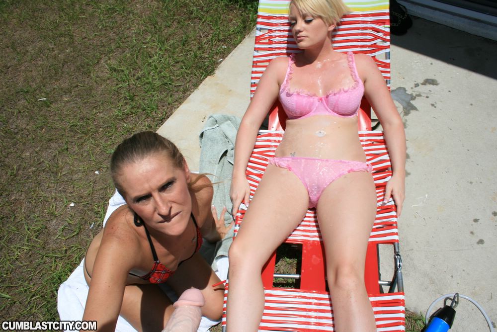 Hot amateur teen Leighla and her step mom Mrs. James are laying out when I whip out my monster shlong in front of them both. Mrs. James takes notice and decides to suck and jack me off all over Leighla while she is sun tanning."Oh yeah shoot that fucking load all over her!" Says the horny mom Sara James.