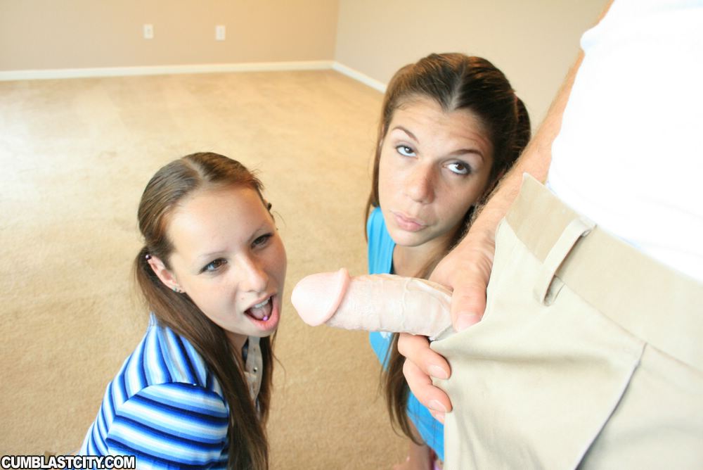 Big dicked neighbor Joey has been fucking and shooting his load on all the local moms. But when teeners JC and Zoe get word...they decide to coax Joey themselves. JC yanks, sucks, spits and jacks until she makes Joey to bust his nut all over her best friend Zoe's pretty face. "Wow Joey...thats a huge fucking cumload!"