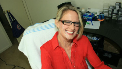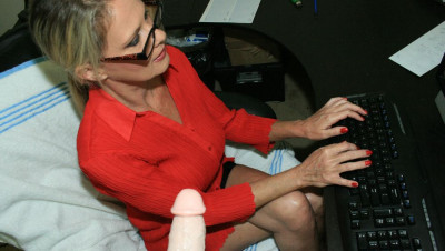 Mrs. Lee is working on her computer when Billy comes over and starts jacking off in front of her while she is working. She tells him to go away, byt Billy continues to jack his cock. While she is typing, he explodes buckets of cum all over the hot milfs face. "OK are you happy now Billy?!"