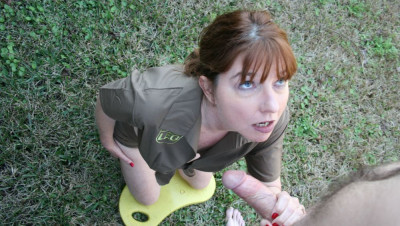 Billy is interrupted from masturbating when the delivery woman Dee delivers a package. When she spots him jacking his rod, the horny milf notices he is doing it all wrong and decides to help him out by giving him a handjob until she is splattered with cum.