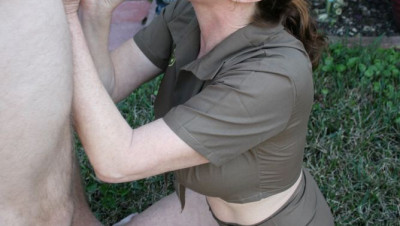 Billy is interrupted from masturbating when the delivery woman Dee delivers a package. When she spots him jacking his rod, the horny milf notices he is doing it all wrong and decides to help him out by giving him a handjob until she is splattered with cum.