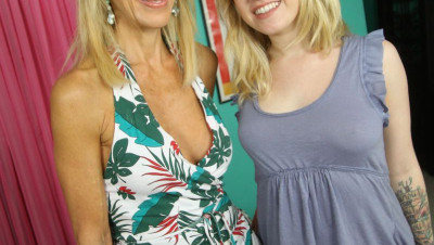 Moms Erica Lauren and Jackie stroke, suck and jerk off a massive cock when it erupts all over their faces in a colossal cumshot. The horny miffs cant believe the load he spurts out as they continue to work his cock dry.