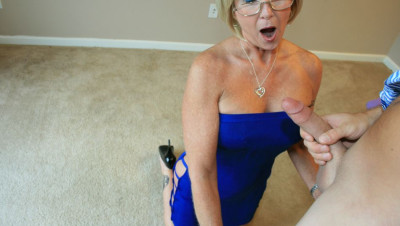 Grandma Ray stops by to measure Johnny for a tux when she accidentally touches his cock. This get out of hand when Johnny whips it out and starts jacking off right in front of Mrs. Ray. "OMG, put that huge cock away before I have to finish what you started!" Mrs. Ray sucks and milks out a mega cumload. "wow...you feel better now dont you"