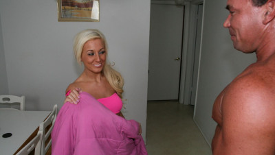 Blonde bimbo Brooklyn loves to make cocks explode with buckets of jizz. But when John hasn't jerked off on months, his balls are filled with a monster load. Brooklyn jerks his prick and just moments before he is about to cum she denies him, the poor guy if made to jerk himself off while he blasts brooklyn in her face.