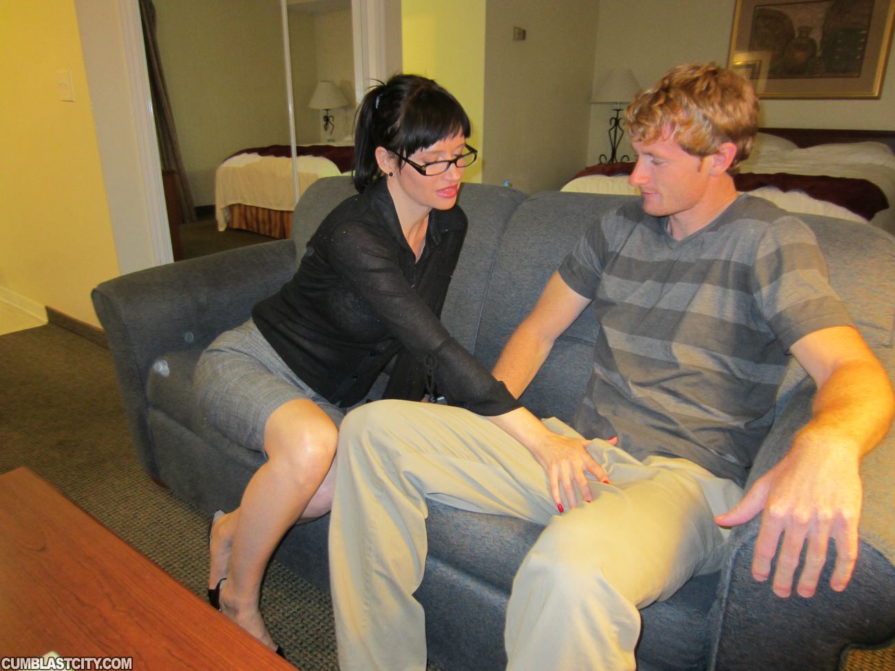 Angie get really stressed out from her work. She called for someone, a college guy with loads of cum and likes handjob. Shaggy is the perfect guy to relieve Angie's stress. She jack off Shaggy till she get lots of cum on her face