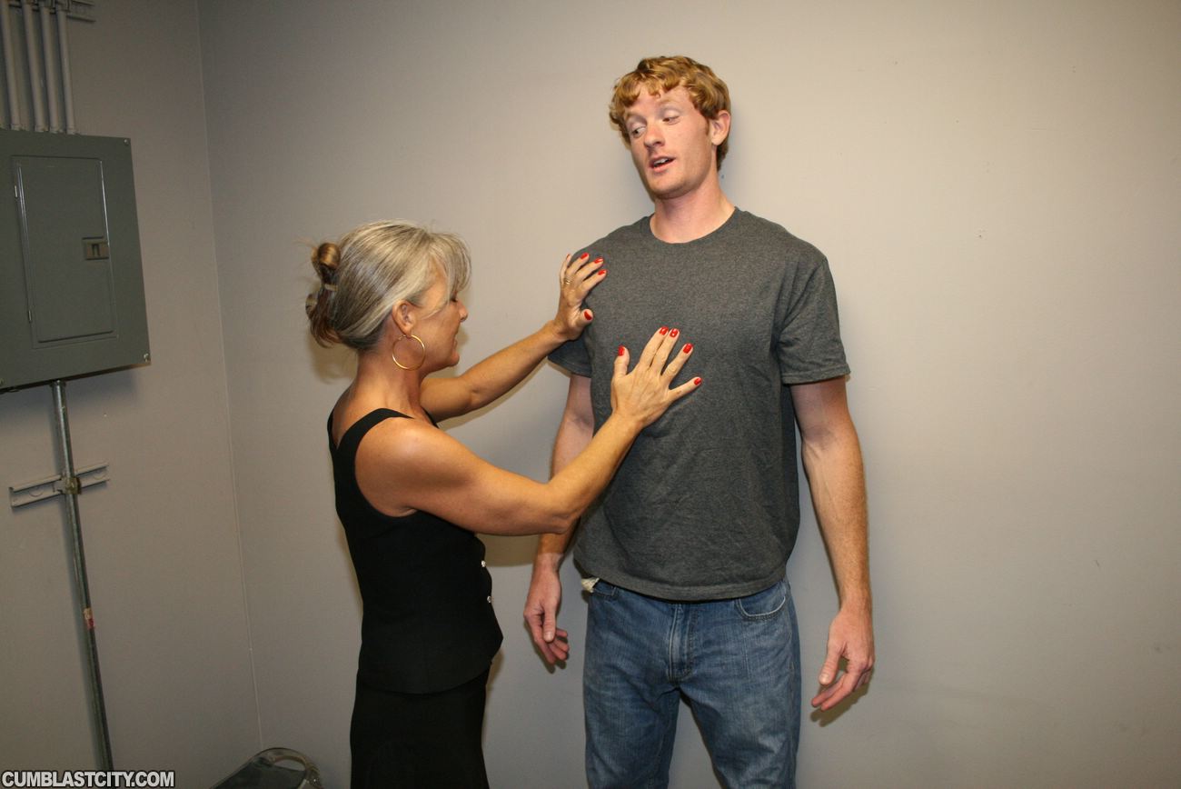 Sexy cougar Leilani Lei spots Mikey and wants to make him nut since she's heard that his balls are the size of softballs. When Mikey pulls out his pud, the granny is shocked at the immense size. Leilani tugs at his cock hoping for a large cumload.
