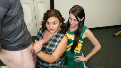 Bratty teenagers Kaci and Ashley love making guys cum, especially the new guy. The teens exchange notes to pass time when they get bored and decide to milk Joeys mega sized boner, little do they know he packs a mega sized cum load.
