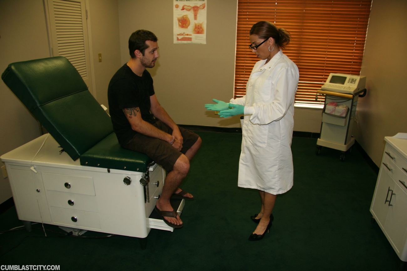 Billy is frightened by the amount of sperm he can spurt. After months if hesitation he finally visits the hospital. Enter Dr. Starr, a Urologist. Dr. Starr begins to examine Billy when he accidentally gets erect. Dr. Starr, curious at his problem, decides to stroke it. Billy immediately unloads a monster load on her face and huge boobs.