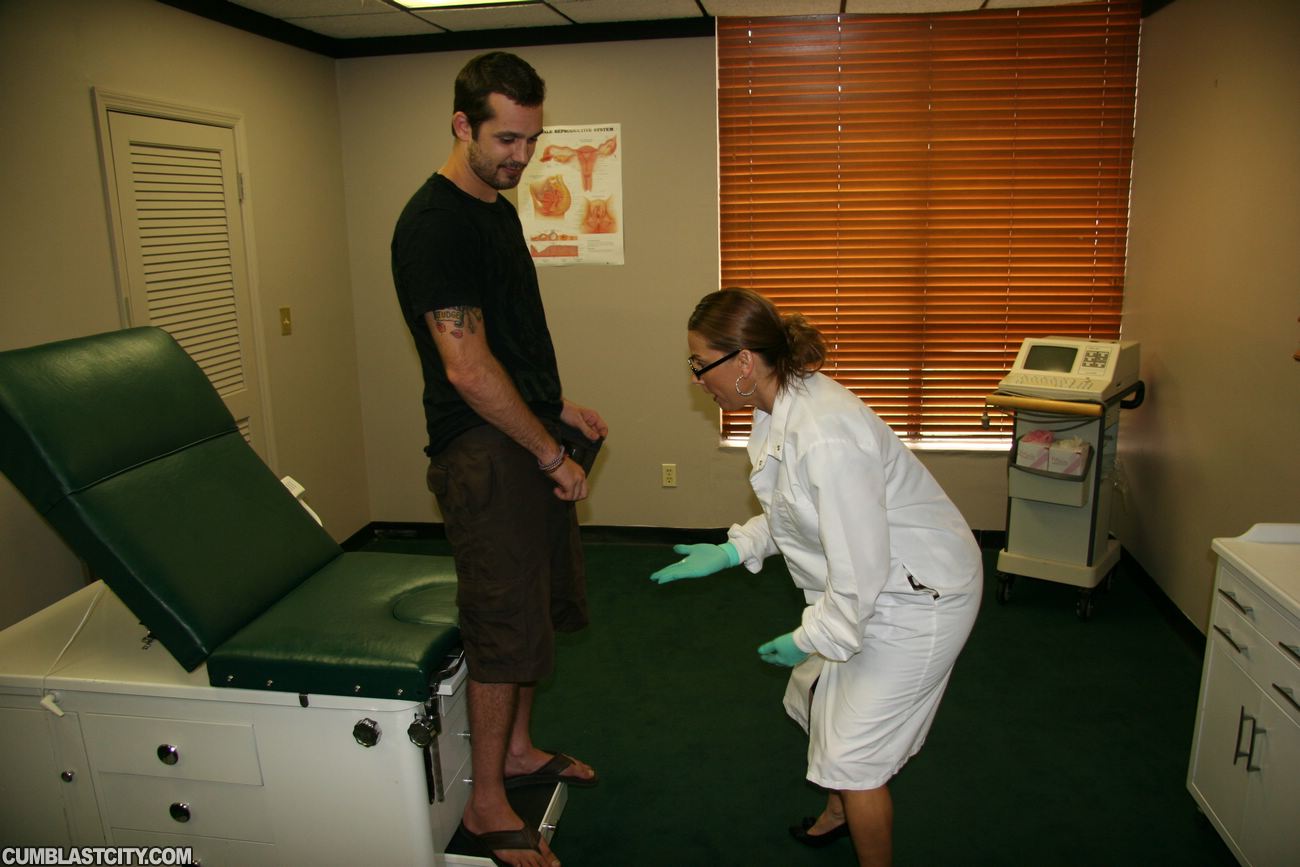 Billy is frightened by the amount of sperm he can spurt. After months if hesitation he finally visits the hospital. Enter Dr. Starr, a Urologist. Dr. Starr begins to examine Billy when he accidentally gets erect. Dr. Starr, curious at his problem, decides to stroke it. Billy immediately unloads a monster load on her face and huge boobs.
