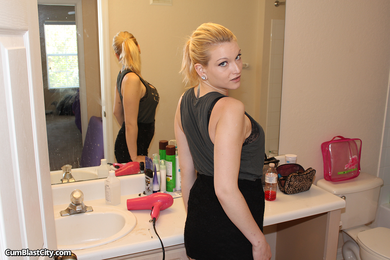 Sexy Amber Sativa is having a shower, when Billy gets in the room asking to join her. Actually, what this dude has in mind is to ask for a handjob, and that is exactly what he gets. The naked blonde babe strokes his big cock in the bath tub, and makes him explode with a huge cumshot in her sweet face.