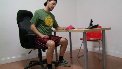 Ricky cant help but jerk his cock while looking at sexy photos of his boss. When he is caught with is cock out his boss is furious. She scolds Ricky while smoking. She jacks his cock while smoking and using his cock as an ashtray until she makes him explode all over her face. "You just jerked your way out of this job man!"