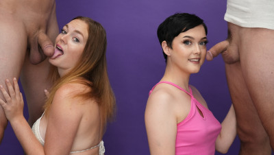 Blowjob challenge. That's the phrase of the day when teens Jade Valentine and Samantha Reigns dropped by the She Reacts studios. The two cute teens can barely contain their excitement as the compete to make the boys cum. Watch the full video to find out who has the best head game.