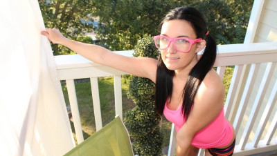 Molly Bliss is a nerdy teen with big juicy tits and even though she looks very boring, she has got a very naughty side to her that comes out with a vengeance. The nerdy teen girl moves closer to the bed and admits that she's always wanted to milk his cock. He continues stroking his hard dick as she makes herself comfortable while making him cum.