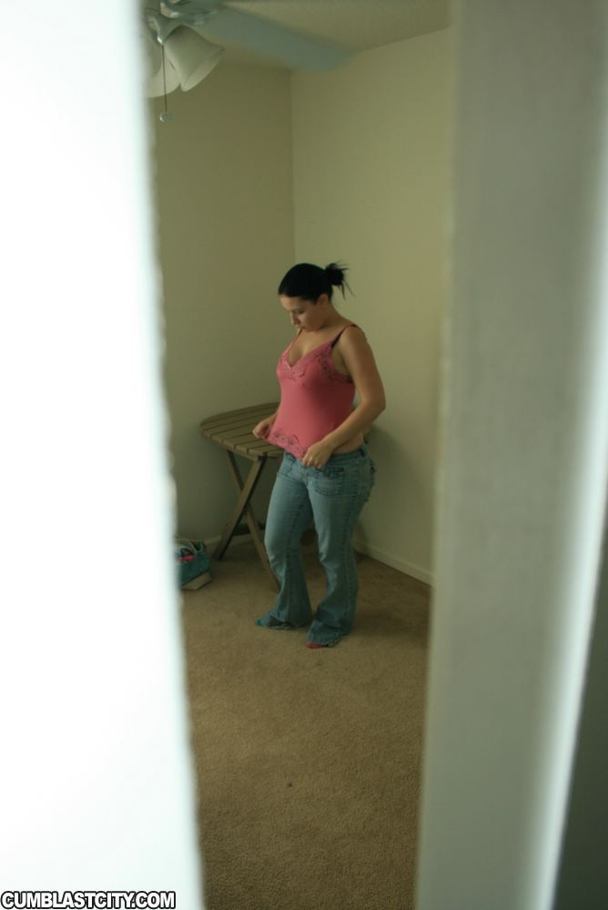Teenie Saiya is being spied on by her neighbior hidden in her closet. As she undresses, he begins jacking off his huge cock. When Saiya opens up her closet she is sprayed with mountians off man goo. To the peepers suprise, Saiya begins jacking and sucking on his cock, milking out even more creamy jizz.