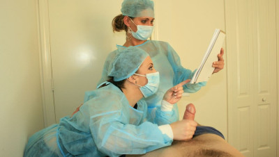 Dr. James and Dr. Ressin need to extract semen from Jonnys cock. They tell him to masturbate in the other room. But he cant cum so the two doctors tell him its ok to cum, and not to be embarrassed. The take turns jacking and tugging his cock until they are finally cum blasted.