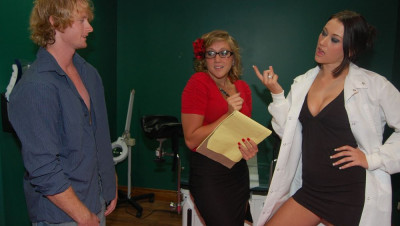 When nurse Alexis and her assistant take a look at a young patients cock, they become excited and decide to start coaxing him to jack off in front of them. The horny teens get excited as they reach out and help him beat his meat. The two are finally blasted with jizz in their faces and beg for more as ropes of cum fly out all over them.