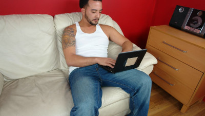 Joey is jerking his cock to his favorite porn. Little does he know that teener Sammy is watching him. When he cant seem to bust his nut, the perverted teen helps him by jacking his big cock and rubbing her wet pussy. Joey blows a massive cumload all over the horny teens face.