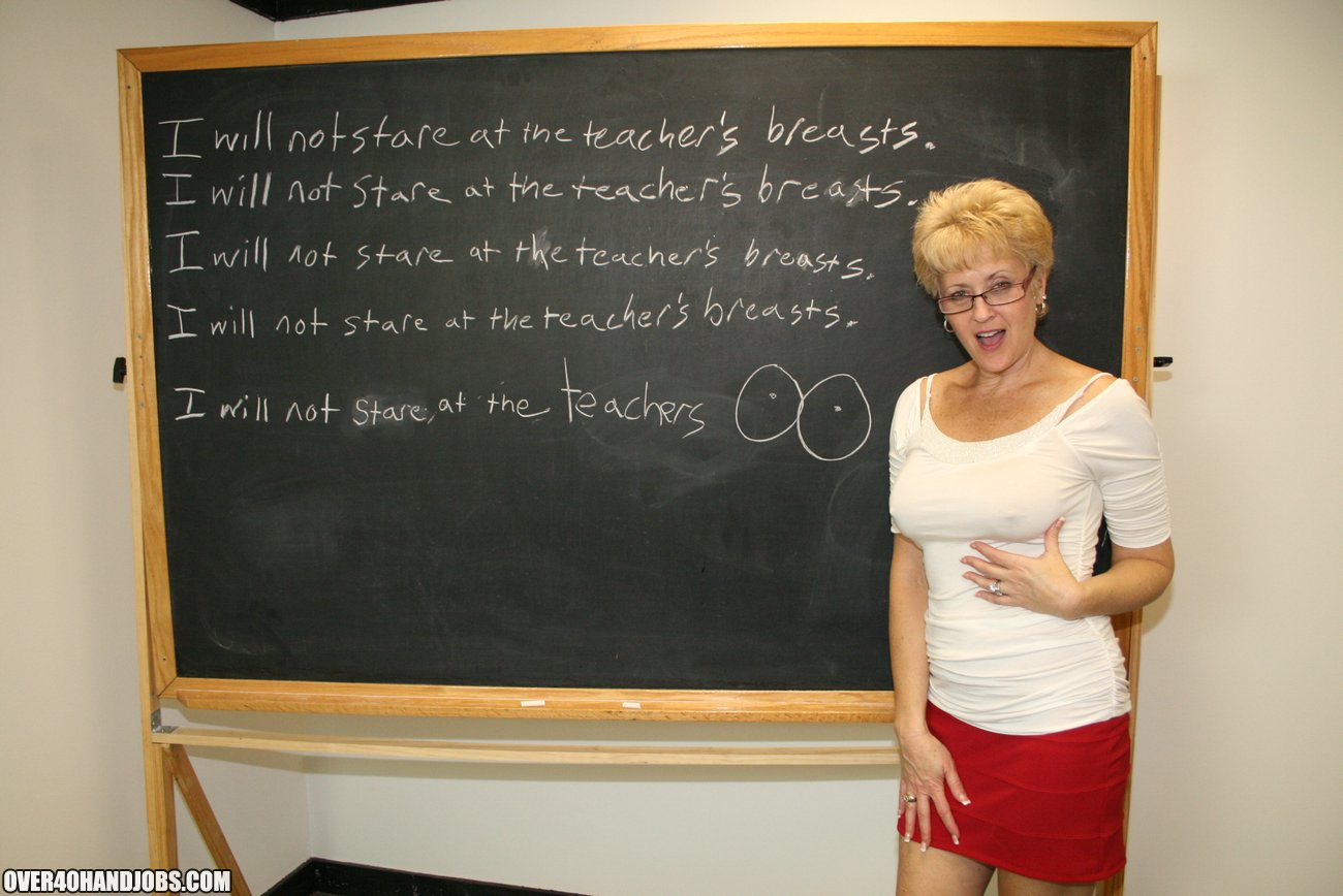 Young Jonny has misbehaved in class again, this time staring at Mrs. Tracy's gigantic juggs. The perverted teacher makes him write on the board, but when this punishemnt doesnt work, the jerks his cock only to bring him to the brink of orgasm them slapping him on the head.