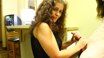 Lisa Brown, a mature horny lady who loves boners, meets Billy, a big-dicked dude. Lisa really likes his huge boner, so she doesn't hesitate to give him a treatment he will remember for along time. She strokes this shift really slowly, and she loves it when he releases his cumload.