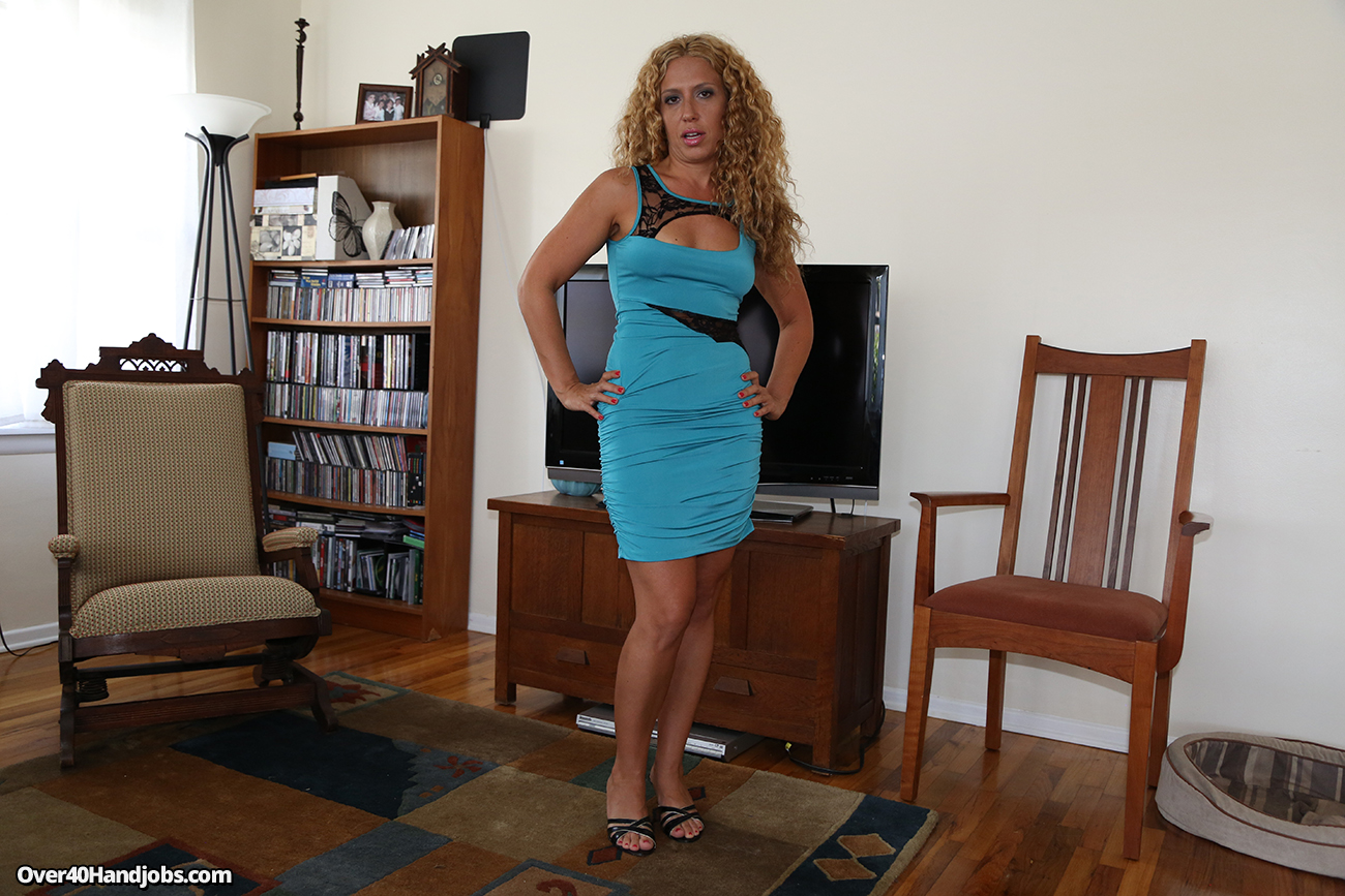 Most people would get in big trouble for being tardy but not Jeremy, instead he gets a mind blowing handjob from his hot step-mom. This POV handjob action takes place right in the living room where the gorgeous curly-haired MILF strips naked and kneels before her horny step-son.