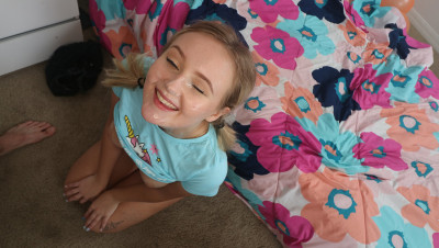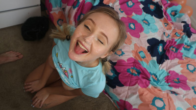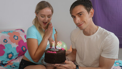 Super cute teen Natalia Queen turns 18 today and gets really surprised when her step-brother comes in with a birthday cake. The best news is that now she can have sex with him and she won't miss the chance! First, the beautiful blonde babe grabs that dude's dick and sucks it big time and then he fucks her tight pussy for good before exploding with cum in her cute face.