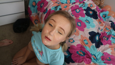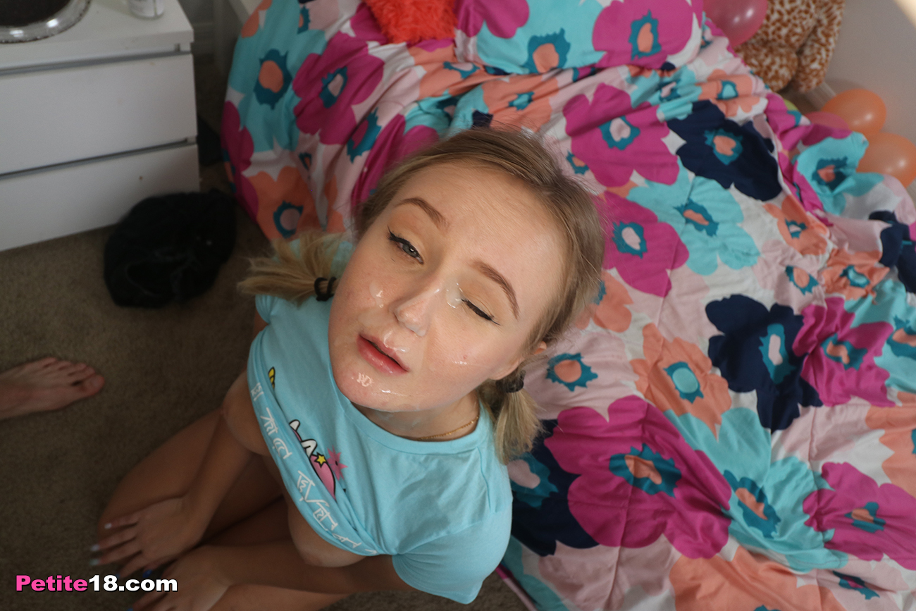 Super cute teen Natalia Queen turns 18 today and gets really surprised when her step-brother comes in with a birthday cake. The best news is that now she can have sex with him and she won't miss the chance! First, the beautiful blonde babe grabs that dude's dick and sucks it big time and then he fucks her tight pussy for good before exploding with cum in her cute face.