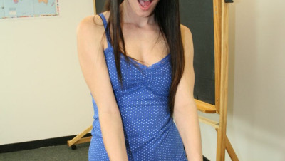 Four eyed nerd Kaci gets busted in detention and begs Mr. Johnson to show her his large cock. The innocent teen gets turned on by the sight, and starts milking him off. Mr. Johnson 's throbbing cock nuts hard, but gets nervous afterwards. She explains to mr. Johnson to not worry, its "our little secret".