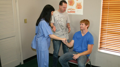 Alex takes Joey to visit his mom, a nurse at the local clinic. Mrs. Niore is shocked to see the size of Joeys dick and starts to rub it. Joey gets hard from excitement. Moments later Mrs Niore is sucking on it hard.