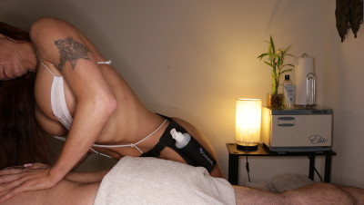 Gabby began practicing massage three years ago with one major goal: to improve the quality of life for those suffering with pain. To help accomplish this goal Gabby is a manual ejaculation specialist. Here, she gives Tom a blowjob and handjob happy ending for pain management.
