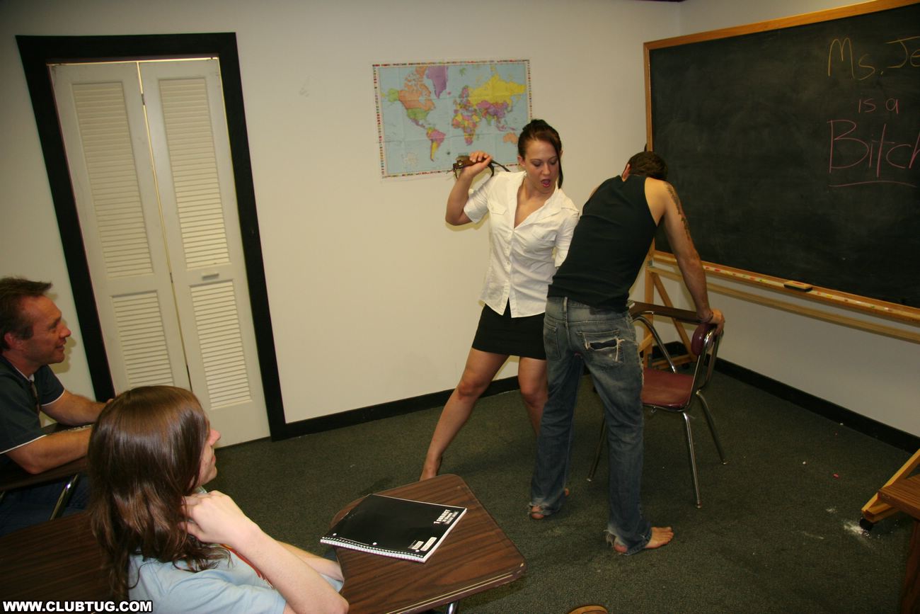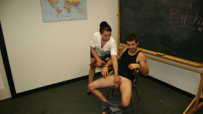 When Bobby starts acting up in class, his teacher Mrs. jewel decides to punish him by embarrassing him in front of everyone. She makes him strip down naked and makes fun of his dick. When he gets erect, Mrs. Jewels starts beating it until he spurts out a big load of jizz.