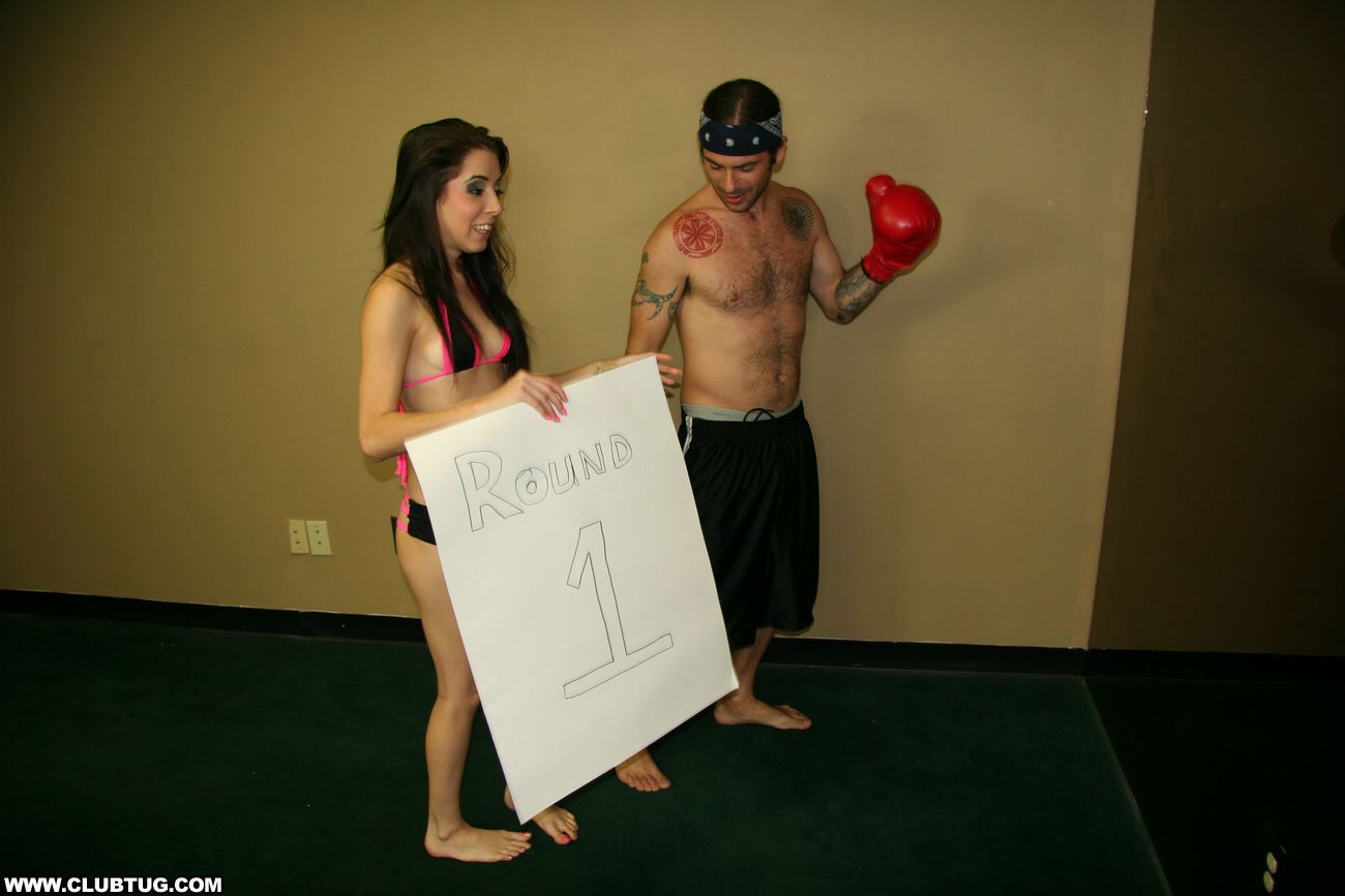 Johnny needs some quick cock relief before his big fight, and no one is better than the sexy ring girl Allison. She gleefully tugs and jerks on his dick. Gripping her hands and urging his cock to erupt with goo, Allison gets the job done!